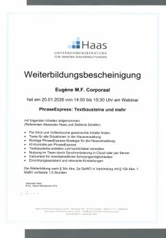 Damit Sie sich selbst von dem breiten Umfang der sämtliche Fortbildungsbausteine überzeugen können, bilden wir hier alle erworbenen Zertifikate und Nachweise ab. Das verstehen wir unter Transparenz.