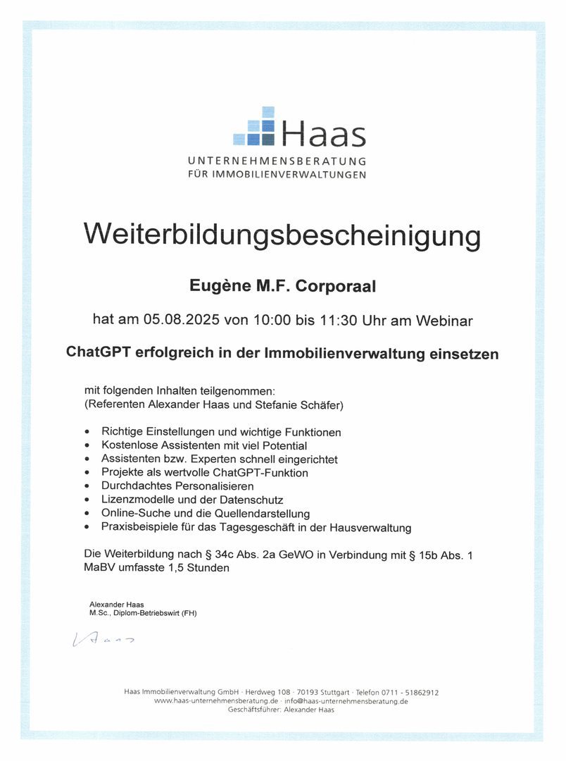 Um alle umfangreiche Aufgaben erfüllen zu können, benötigt eine professionelle Hausverwaltung umfangreiche Erfahrung und sachkundige Weiterbildung in vielen Bereichen.